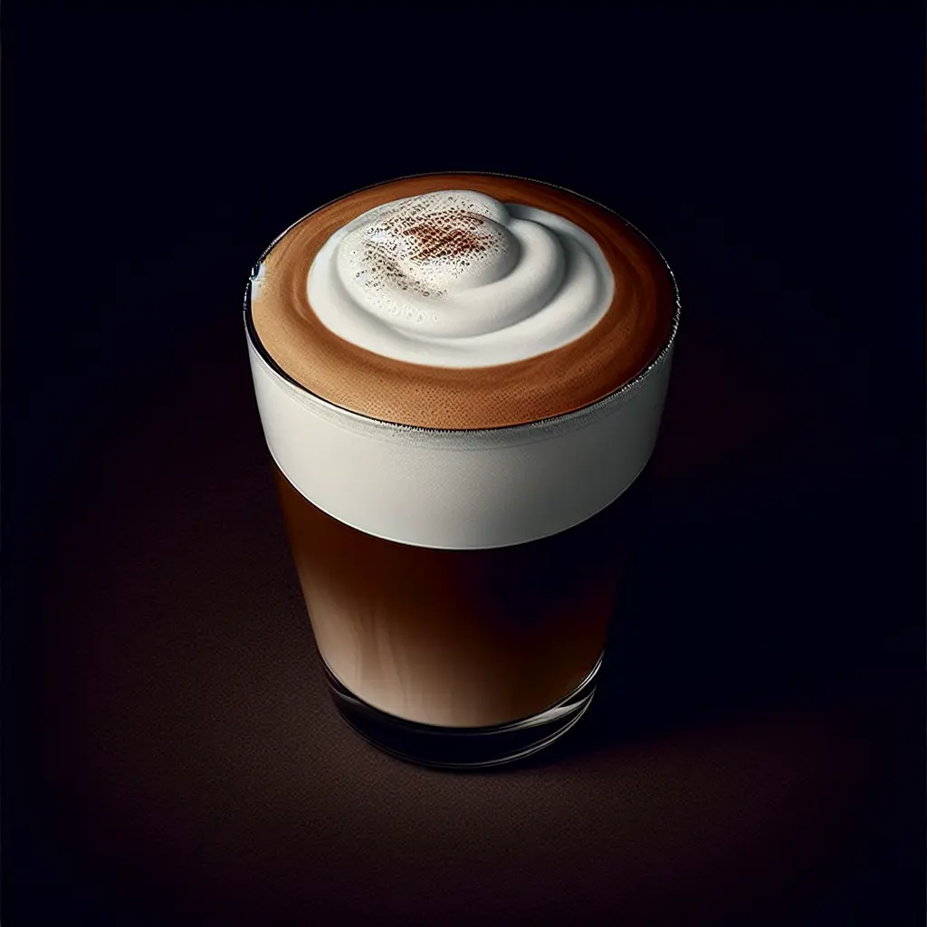 Perfectly frothed milk over a bold espresso shot, topped with cocoa dusting.