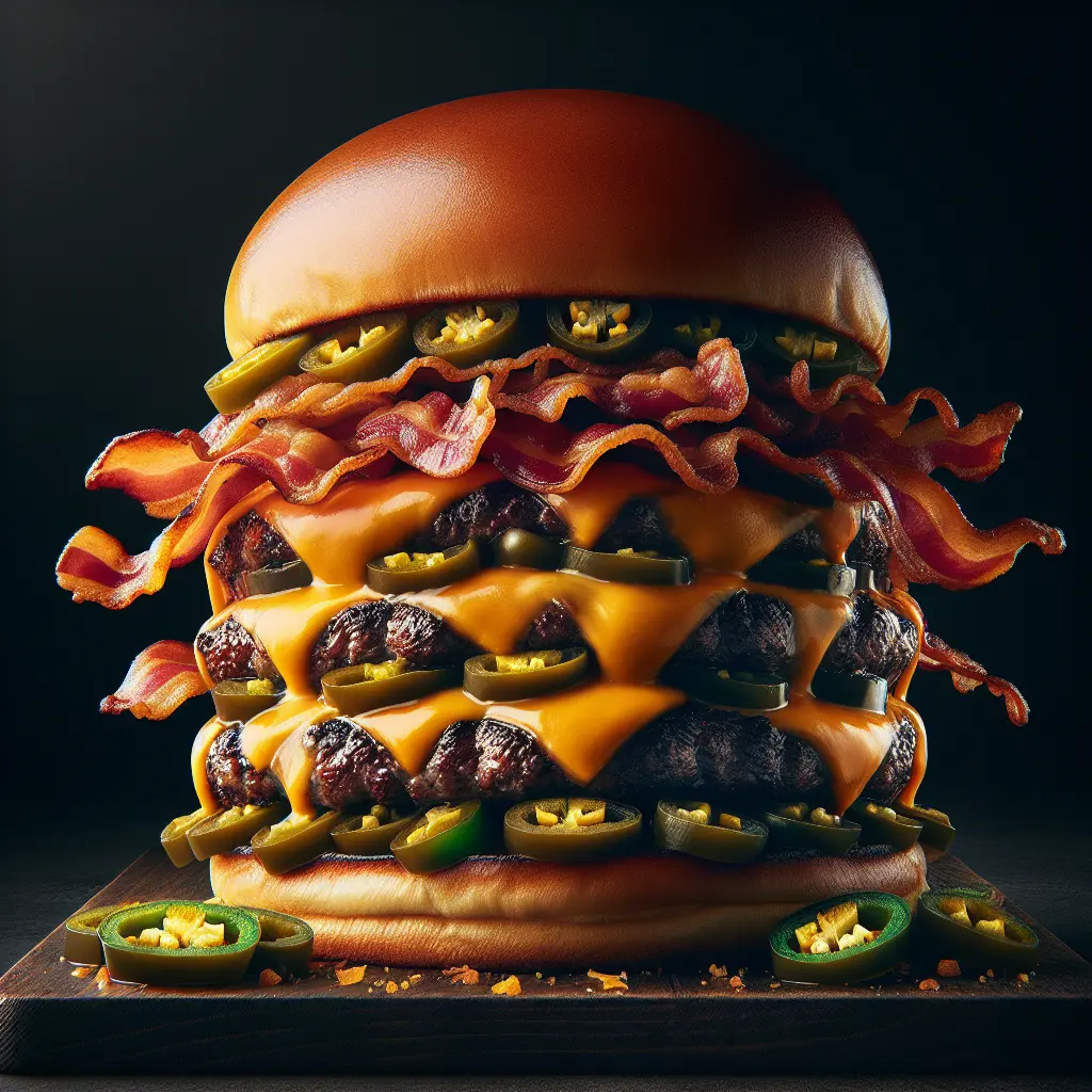 Prepare to sink your teeth into our signature Massive Texan Burger. This towering delight features a juicy beef patty grilled to mouthwatering perfection, loaded with crispy bacon, melted cheddar cheese, and zesty jalapeƱos. All this is encased in a freshly baked brioche bun, ready to tantalize your taste buds and satisfy your hunger!