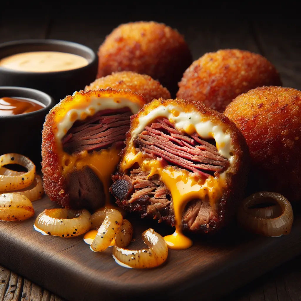 Crispy golden croquettes filled with tender smoked beef brisket, cheddar cheese, and caramelized onions, served with a smoky BBQ aioli.